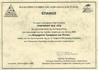 Το Παγκύπριο Συμβούλιο Ασφάλειας και Υγείας απένειμε στην Γρηγορίου Β.Ε. Λτδ έπαινο μέσα στα πλαίσια του Διαγωνισμού των Ασπίδων Ασφαλείας για το 2004. Η Γρηγορίου Β.Ε. Λτδ πήρε τη δεύτερη θέση στην Βιομηχανία Τροφίμων και Ποτών. Η απονομή έγινε κατά την διάρκεια της Τελετής Έναρξης της Εβδομάδας Ασφάλειας και Υγείας από τον έντιμο Υπουργό Εργασίας και Κοινωνικών Ασφαλίσεων κ. Χρίστο Ταλιαδώρο. Ο έπαινος αυτός επιβεβαιώνει την έμφαση που επιδεικνύει η Διοίκηση και το Προσωπικό της εταιρείας στον τομέα της Ασφάλειας και Υγείας στο χώρο εργασίας.