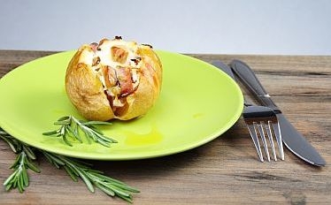 Πλένετε καλά τις πατάτες και τις βράζετε σε μια κατσαρόλα με κρύο και αλατισμένο νερό για 5 λεπτά. Τις σουρώνετε, τις βάζετε σε ζεστό φούρνο και τις ψήνετε για μια περίπου ώρα. Αφού ψηθούν, κόβετε μια χοντρή φέτα (προς το μήκος) και τις αδειάζετε κατά τα ¾ τους. Βάζετε το εσωτερικό από τις πατάτες σε ένα μπολ και το λιώνετε. Σε ένα τηγάνι ζεσταίνετε το βούτυρο, ρίχνετε το λουκάνικο κομμένο σε χοντρές φέτες, τον πουρέ από τις πατάτες, τον μαϊντανό, τα μανιταράκια, το σκόρδο, λίγο αλάτι, πιπέρι, μοσχοκάρυδο και τα ανακατεύετε όλα μαζί καλά. Γεμίζετε με αυτό το μίγμα τις άδειες πατάτες τις οποίες τοποθετείτε σε ένα ταψί. Τις πασπαλίζετε με τη φρυγανιά, τις περιχύνετε με λιωμένο βούτυρο και τις ψήνετε στο φούρνο στους 190 °C μέχρι να ροδίσουν.